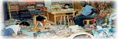 ある夜、私たちがボンババを訪れると、レーヨンの布地を前に西洋人の夫婦が切迫した雰囲気でボンババのボスに詰め寄っていた。彼らの英語の会話をそれとなく聞いていると、どうやら染め上がった布が雨でにじんでいて使い物にならないという クレーム のようだ。